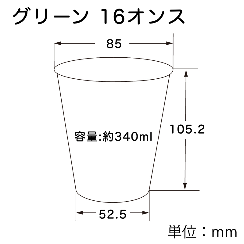 | サイズ | グリーン16オンス:85×105.2×52.5mm 水色18オンス:93×135×52.6mm サイズ:口径×高さ×底径(単位:mm) |