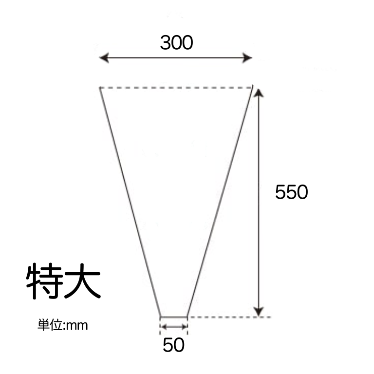 | サイズ | 特大:550×300/50mm 大:550×250/40mm 中:550×200/40mm 小:350×200/40mm サイズ:長さ×上辺幅/下辺幅(単位:mm) |